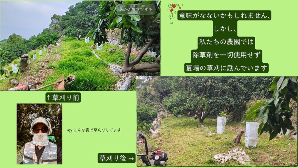 除草作業を草刈機、及び手作業にて実施し、管理・栽培しております。